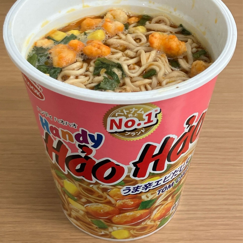 熱々のうちに食べると辛さが意外と来る!ベトナム現地で製造されていて1番売れてる商品らしいですが、風味は優しいエスニック🦐麺の食感はカップラーメンというより、カップ蕎麦な感じ。何でもそうかもしれませんが、残りスープにご飯入れるとまた美味しかったです笑