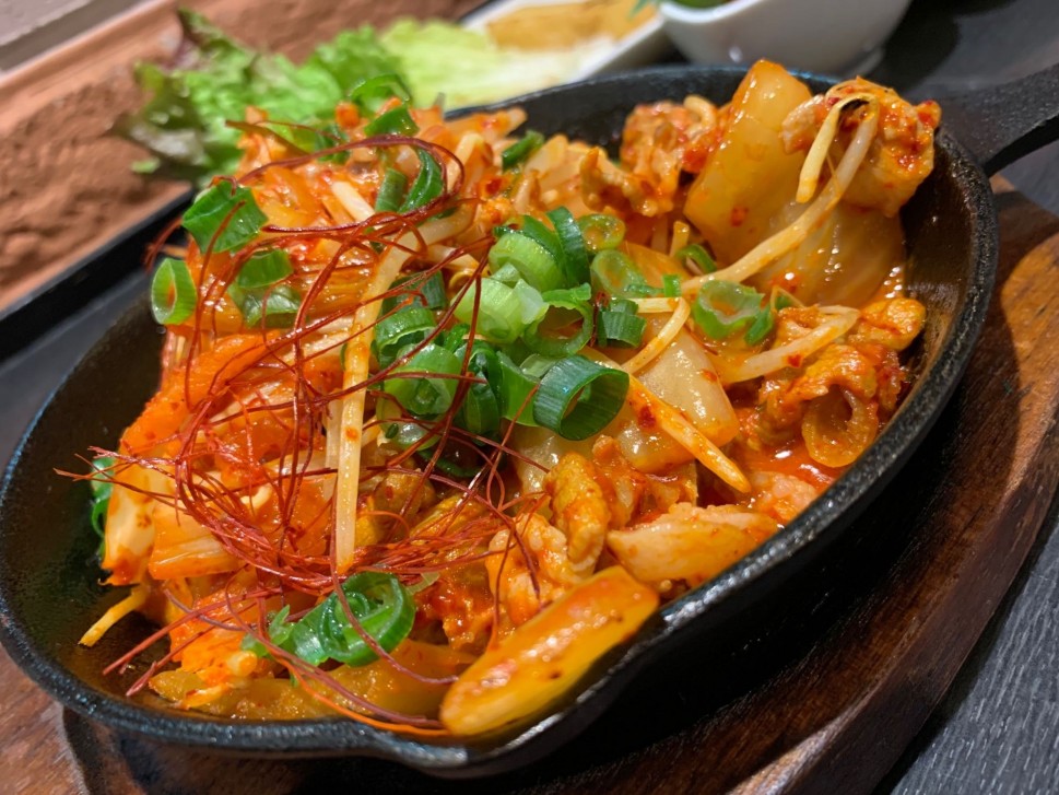 大阪鶴橋直送の白菜キムチで作った豚キムチ、フレッシュ中旨辛を堪能出来ますよ。