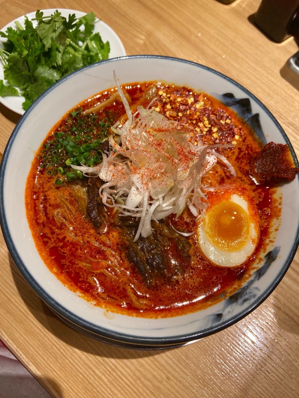 【辛紅らーめん8丁目】AFURI辛紅の大好きなメニュー🌶️チャーシューは2種類から選べます!柚子が効いているのでさっぱりしつつも唐辛子と山椒がバランス良く効いていてとっても美味しいです♡