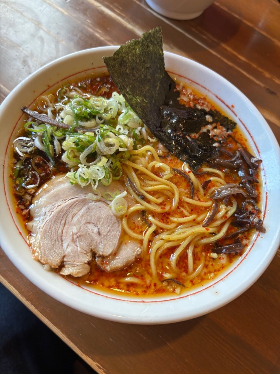 すみません、2回くらいかき混ぜてしまいましたー🥹札幌市南区藤野にある、マイホームタウンにある美味しい人気店です♪大辛は、旨辛いレベルでした。さらに上が激辛、超激辛がある様です😊ちなみに、藤野ザンギは必食です‼️