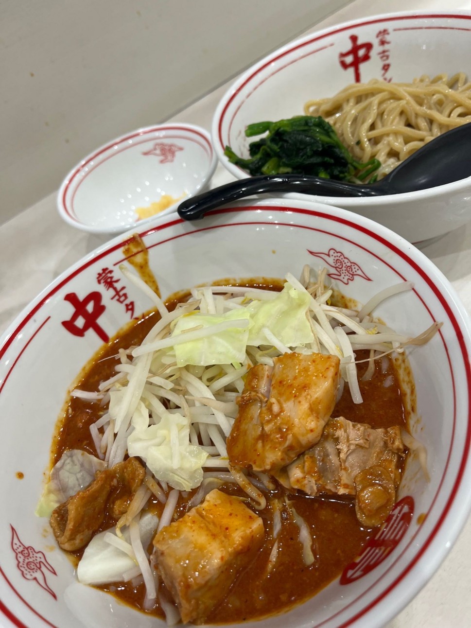 渋谷店限定メニューの「冷し濃厚巨豚北極」辛さ10のデフォルト、ほうれん草トッピングでいただきました!
