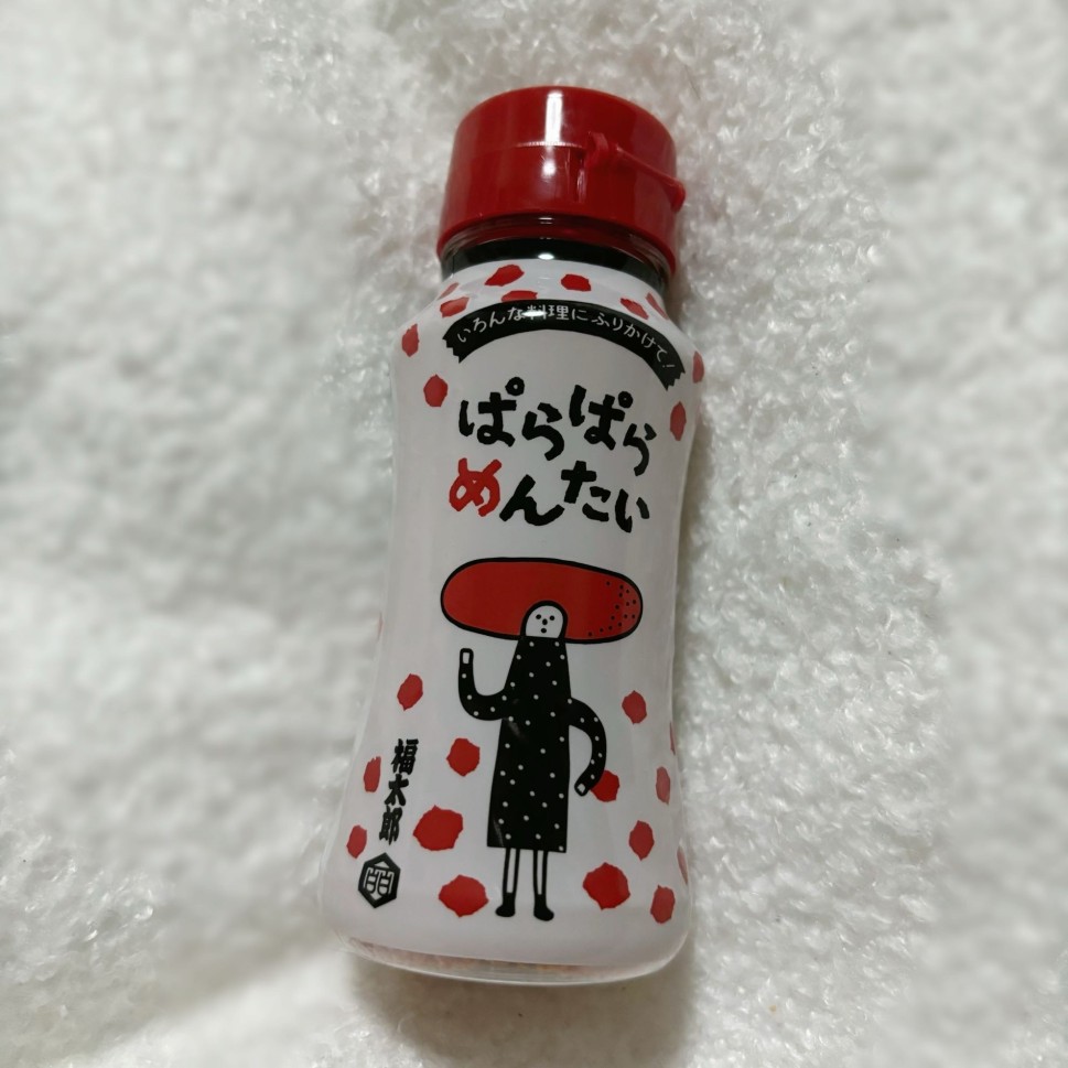 めんべいで有名な福太郎のふりかけ調味料。こんなかわいいパッケージなのに、ちゃんとピリッと辛くて、明太子の味がする。何にかけてもおいしい。食感はたらこ味のふりかけ。