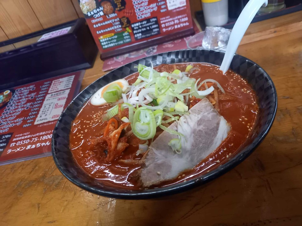 実食…が、一口スープを啜り他の味と比べる(再度深く想像中…)と若干マイルドで食べやすいので、まあちゃんさんのジョロキアラーメンを初めて食する方にはまず味噌味をおすすめします。