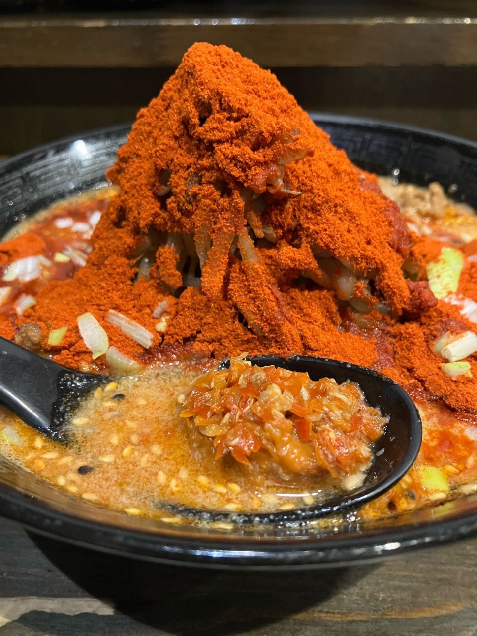 スープはともかく、赤い粉の山とネーミングはヤバいでしょ😅 killとかdeathとか漢字で書いたら強烈なイメージで、注文するのが怖いですが意外な感じ。情報ありがとうございます😊