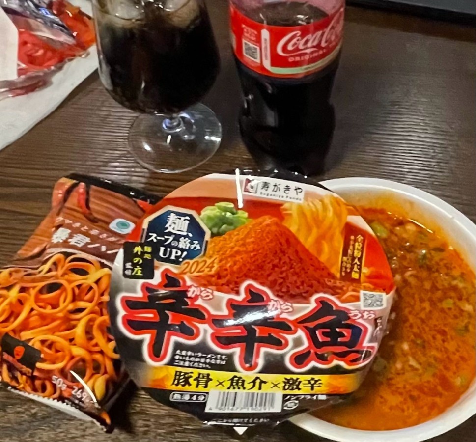 コーラが合う!!暴君ハバネロとコーラと辛辛魚!!!コンビニで揃う辛いもの祭、辛辛魚は確かに辛ラーメンよりは辛くて息吸いすぎたら反射で咳き込む感じです、でも飲み物があれば全然美味しく食べられます!
