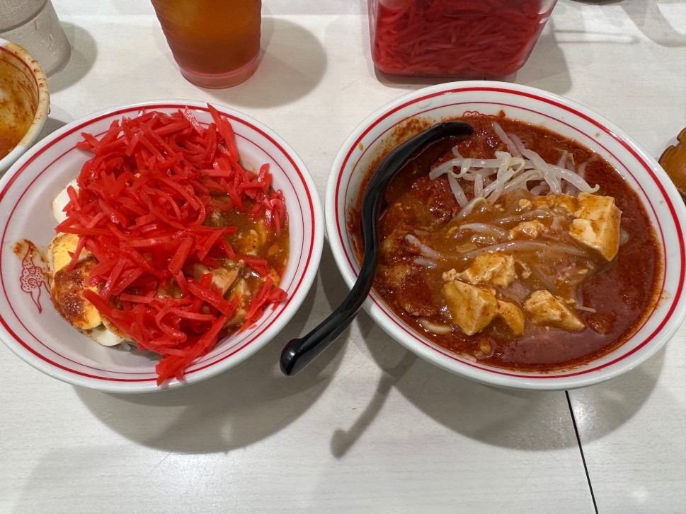 ご飯には麻婆豆腐とゆで卵を並べて、