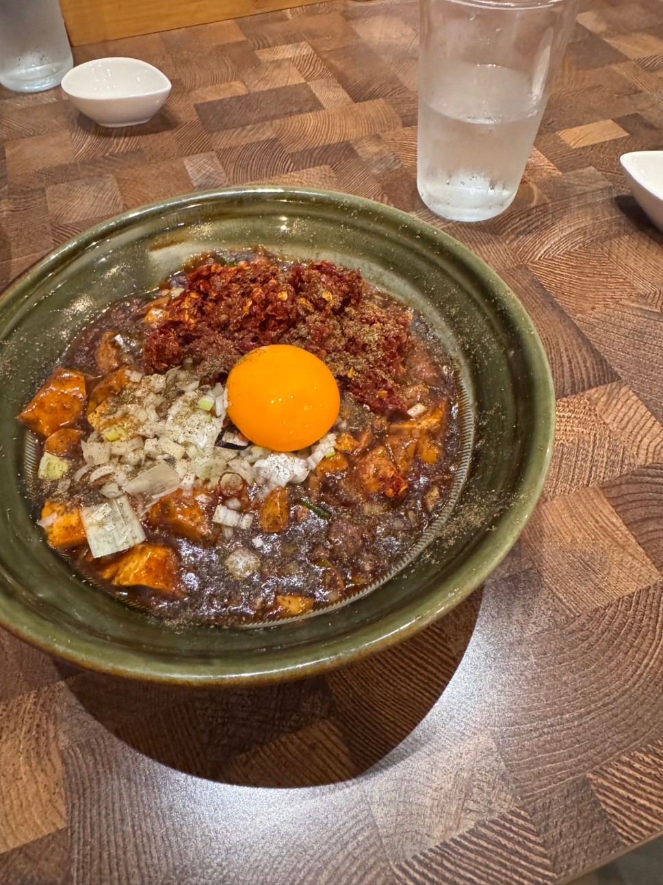 ご飯には麻婆豆腐とゆで卵を並べて、