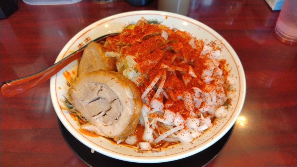 辛さ増しで8辛をお願いしたら2倍に出来ますとの嬉しいお言葉。さすが二郎系、完食完飲し甲斐がありました。