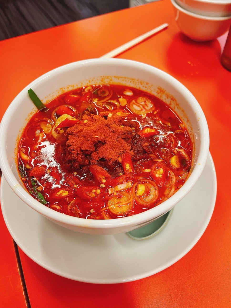散々飲んで〆のラーメンに🍜酔っていたせいかそこまで辛くなかったような、辛かったような😂くらいの記憶です笑 真っ赤な見た目の割には思ったほど辛くないかも?とても美味しかった♪