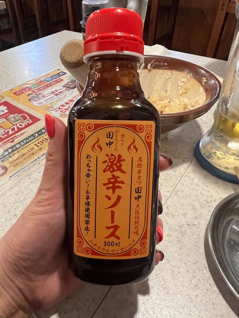 田中で串カツ食べるなら迷わずこれをつけます☆お通しのキャベツにももちろんこれ♪揚げ物に合うしキャベツにも合う✨家にも欲しいです😆