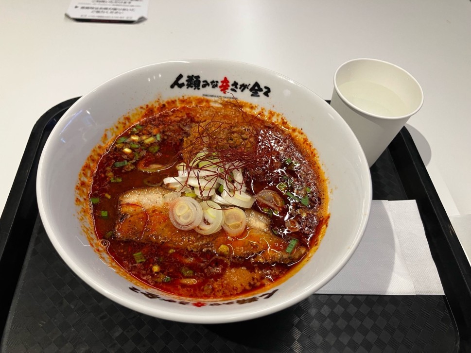 CoCo壱10辛とかと同じくらいか。健康のため、ラーメンスープは絶対に完飲しないことにしているのだが、おいしくて危うく完飲しそうになってしまった😱