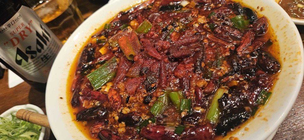 山椒と唐辛子が沢山入っていて、スープもサラサラして辣油のラーメンって感じでした。