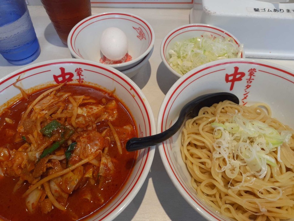 お昼に蒙古タンメン中本へ行って、冷やし味噌やさい(野菜大盛&生卵&ネギトッピング)を食べた🍜初めて生卵を頼んだけど、生卵も悪くないね🥚