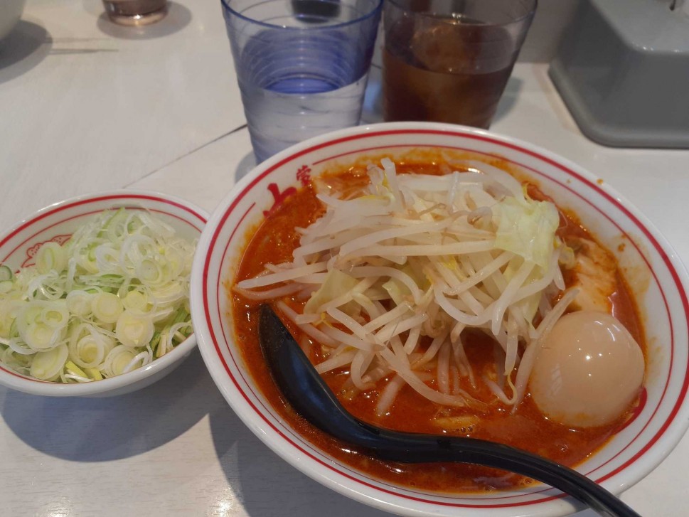 お昼に濃厚巨豚北極(ニンニク抜き&味玉&ネギトッピング)を食べた🍜今回初めて辛さノーマルで食べたけど、通常の北極ラーメンよりあまり辛くなくて美味しかった😊
