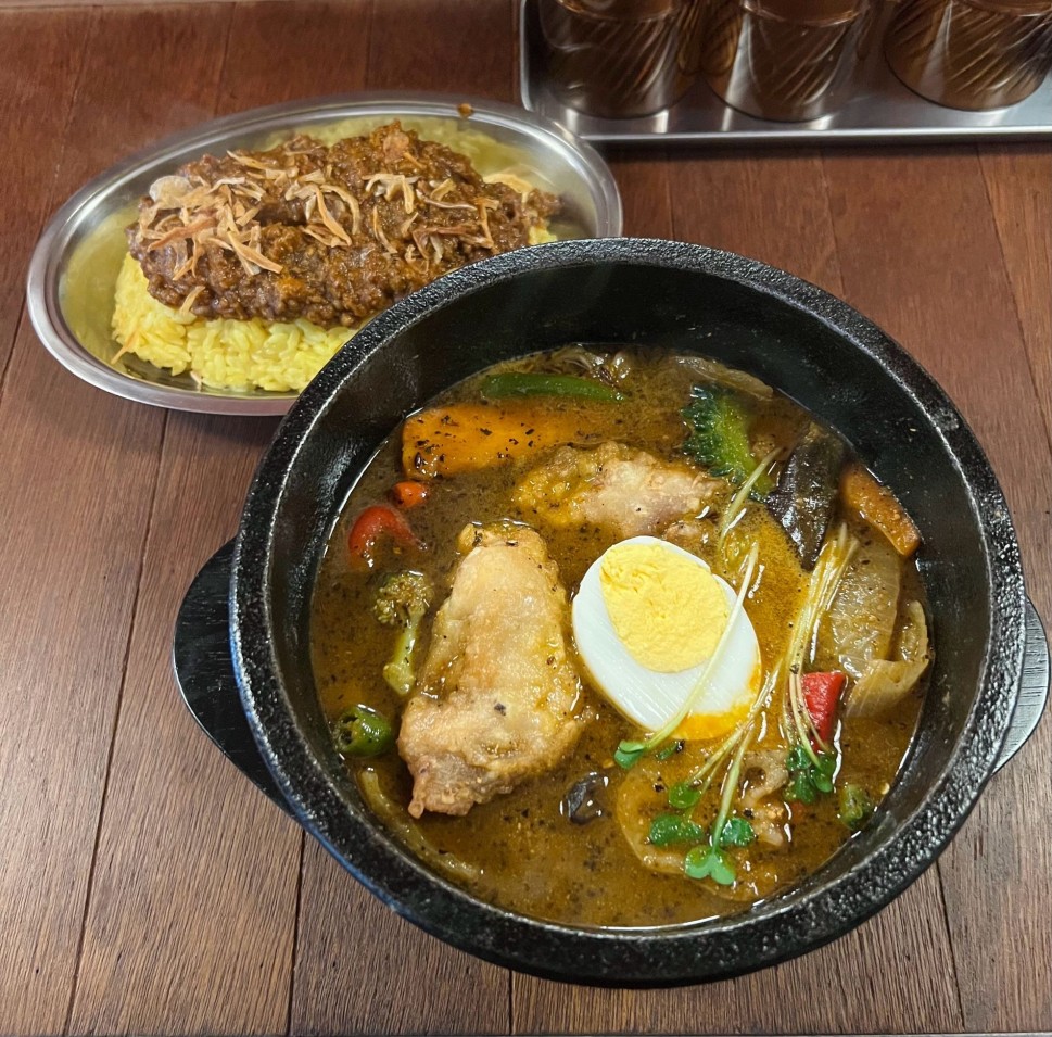 スープカレー初めて食べましたが、野菜たっぷりでカレー鍋のようで美味しかったです!寒い日に食べても汗をかくほど体が温まりました♪スープの中に唐辛子が数本入っていて、スープに辛さが足りないなと思った時に唐辛子をかじるとさらに辛さが増して美味しかったです♪