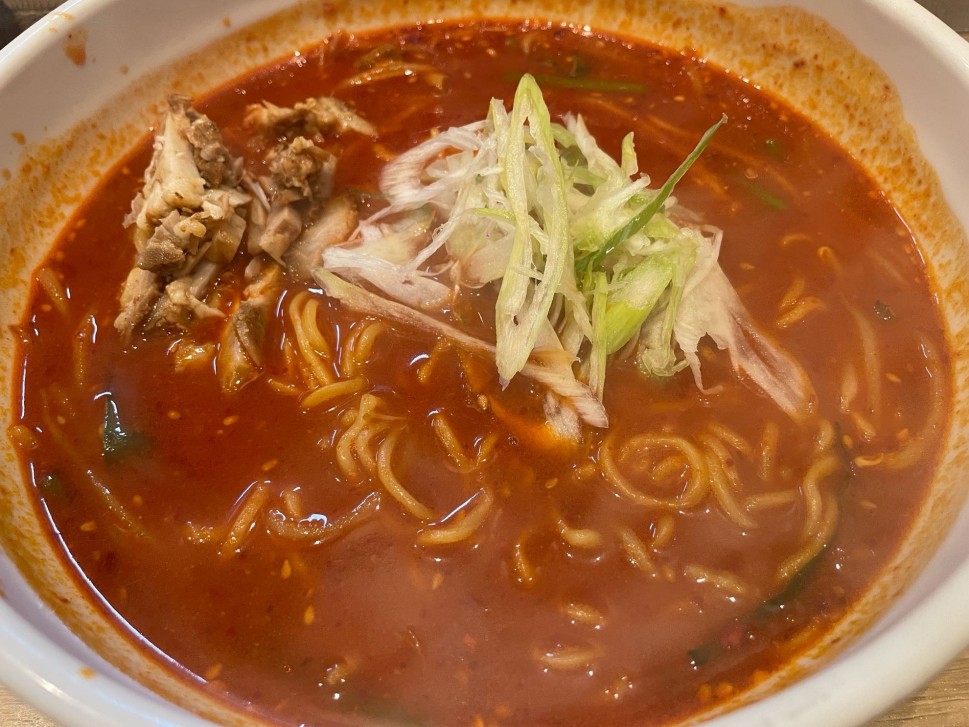 辛さはずっと同じペースでじわじわ来る系です。味が濃いのと熱いので水少し多めに飲んだのでお腹たぷたぷです。