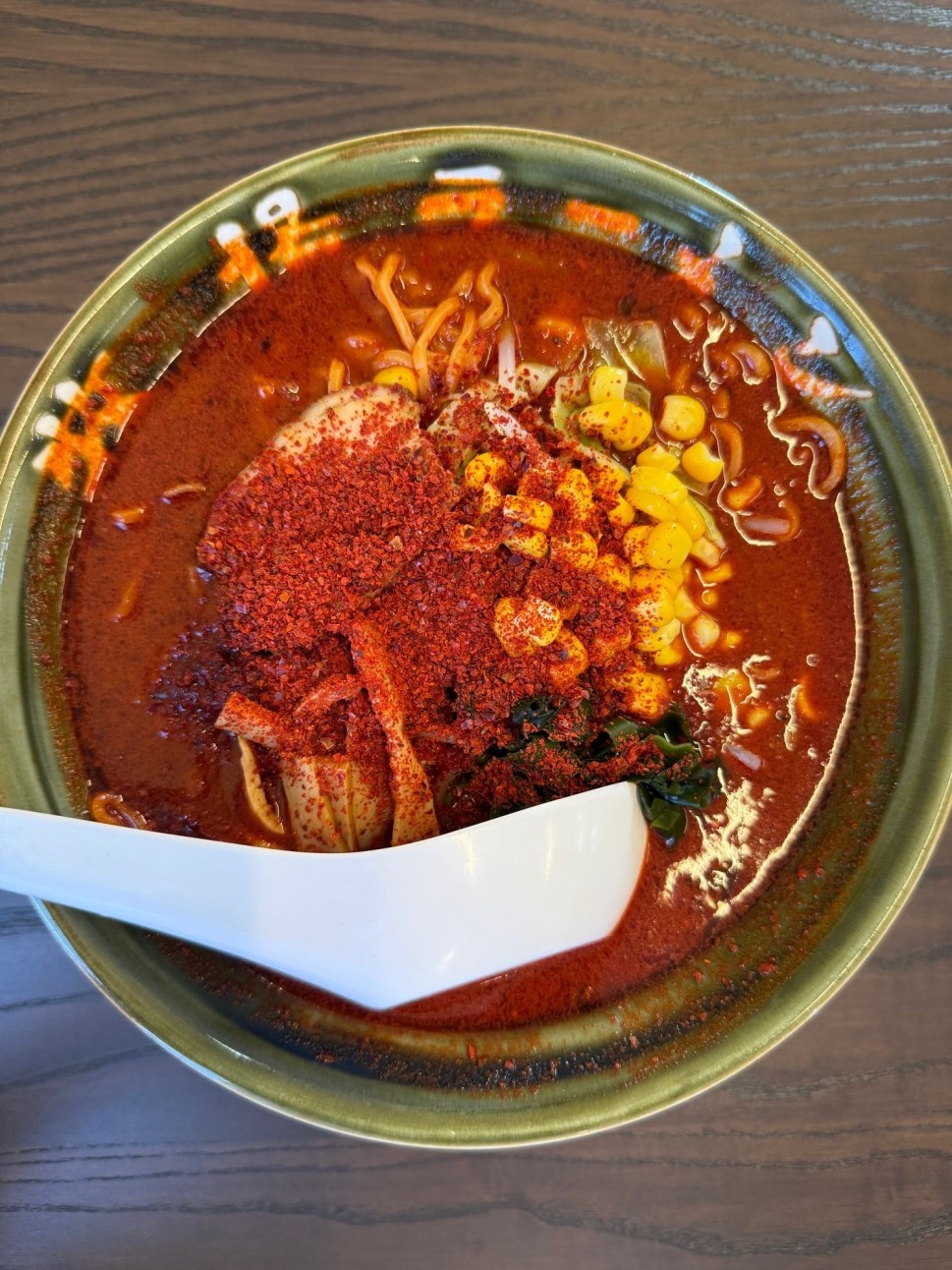 私は唐辛子麺でいただきましたが、中華麺も選べます。大盛りも無料です!
