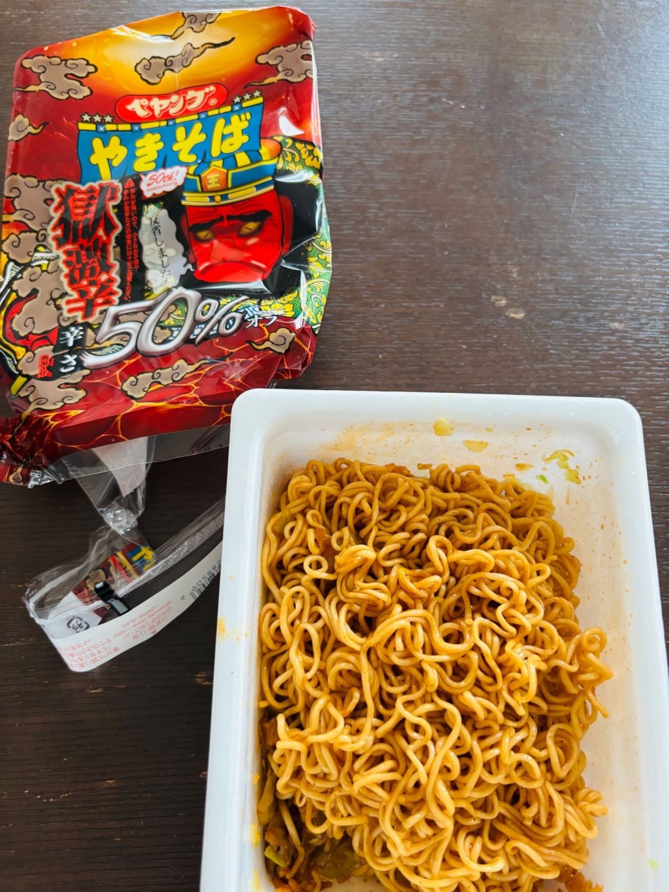 一口めはペヤングの激辛焼きそばと変わらない感じで普通に美味しく食べていましたが、半分くらい食べると辛さが蓄積されていくのを感じて、汗と鼻と涙が止まらなくなりました🤣
