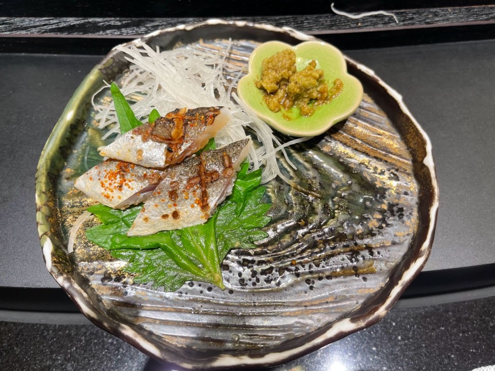 ちょっと炙った刺身に絶妙な量の唐辛子。