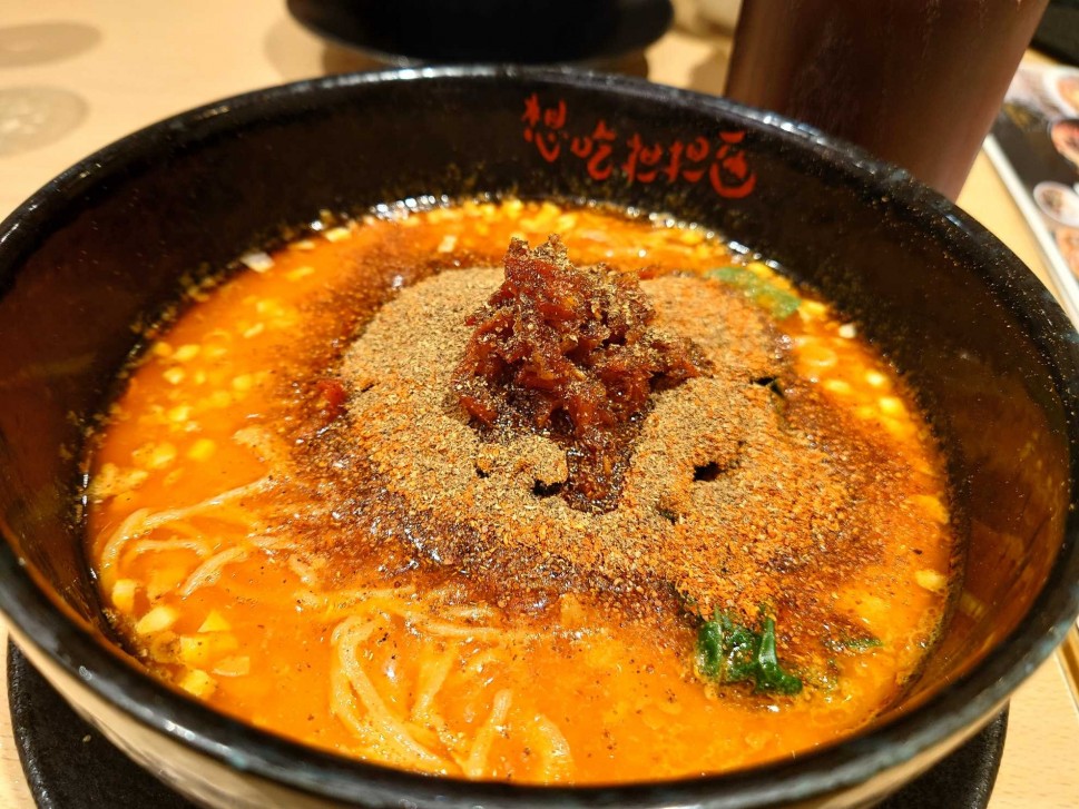 これは辛旨です。スープは、担々麺なので、どろどろ系です。