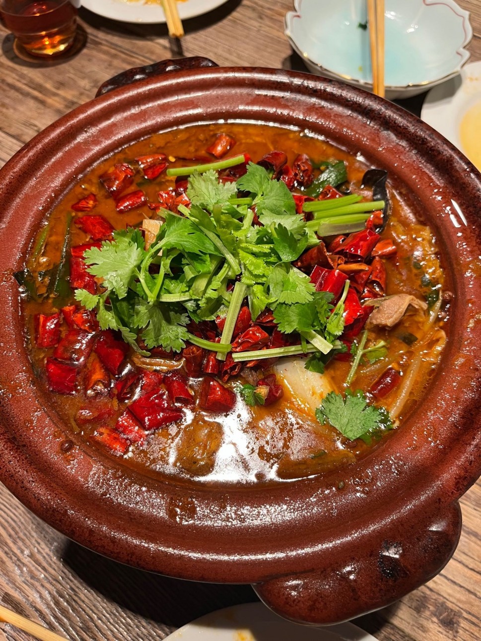 久しぶりに4人(辛い物好き2人、普通人?2人)での飲み会。特別に激辛で作ってもらった。強い辛みの中に牛肉の旨みが凝縮され、香菜(パクチー)との相性もよく夢中になって食べました。実に美味かった。