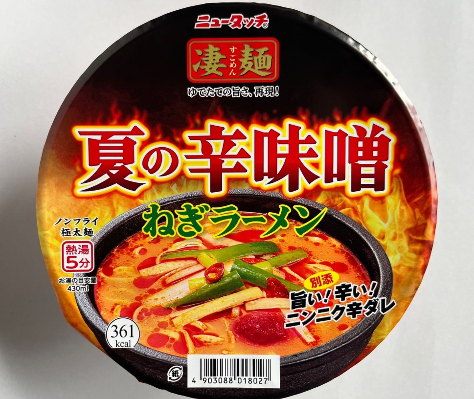 毎年この時期に店頭で見かけるカップ麺。もちもち食感の中太ちぢれ麺がねぎたっぷりの辛味噌スープに絡んで美味しい。辛さもカップ麺にしてはいい感じです。