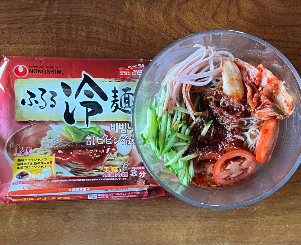 コシのあるつるつる極細麺は韓国冷麺らしく喉越しがいい。辛味ダレはほど良い旨辛で美味しくいただきました。