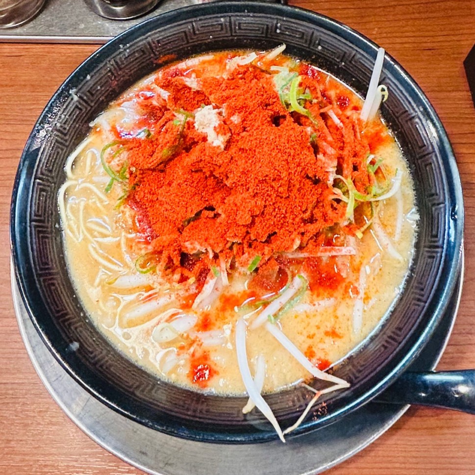 濃厚な豚骨スープに細麺が絡んで、ライスか欲しくなる🍚
