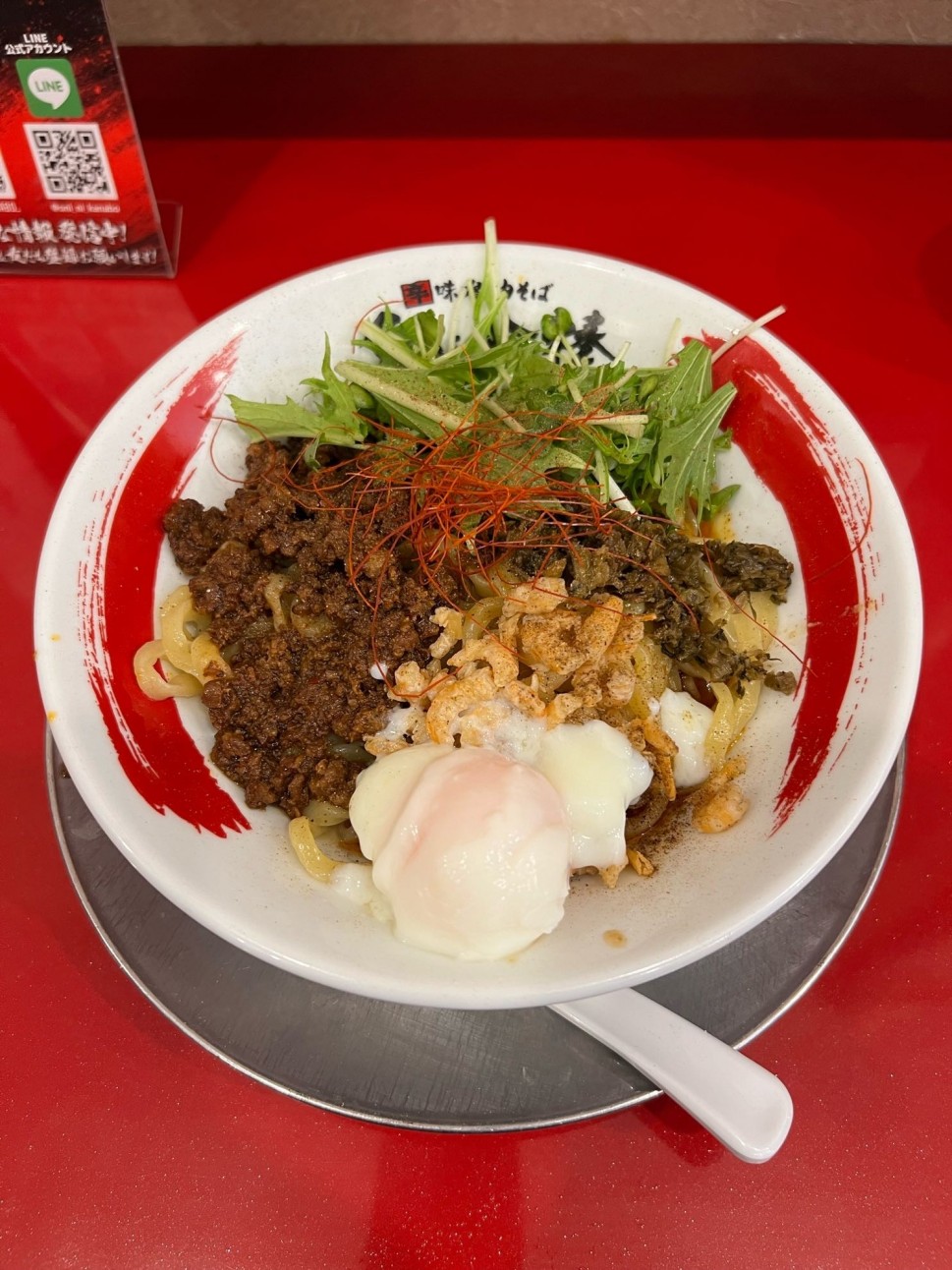 周りのサラリーマンの方々がみんなレベル1を頼んでいたから相当辛いのかとドキドキしながら待ちましたが…全然いける!なんならレベル5にすれば良かった!温玉は結構固まっているのでしっかり混ざらず辛さ痺れをマイルドにすることがなかったので、私にはちょうど良かったです。