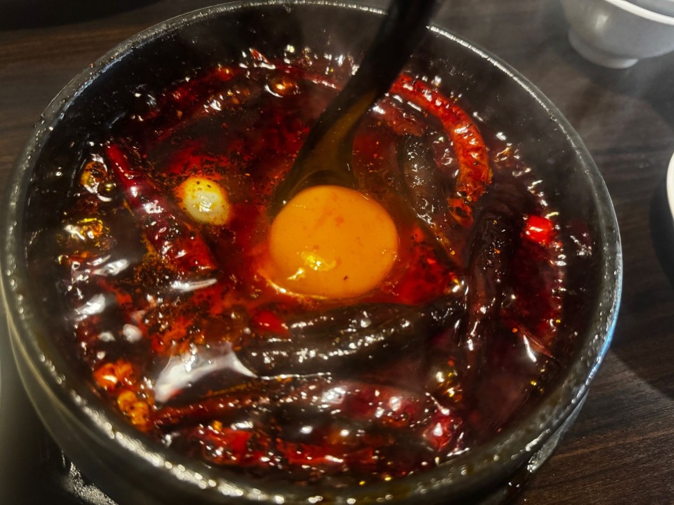 辛さよりも、唐辛子のコゲが全体に広がってて、ずっこコゲの味が不味すぎました…期待していただけに残念。