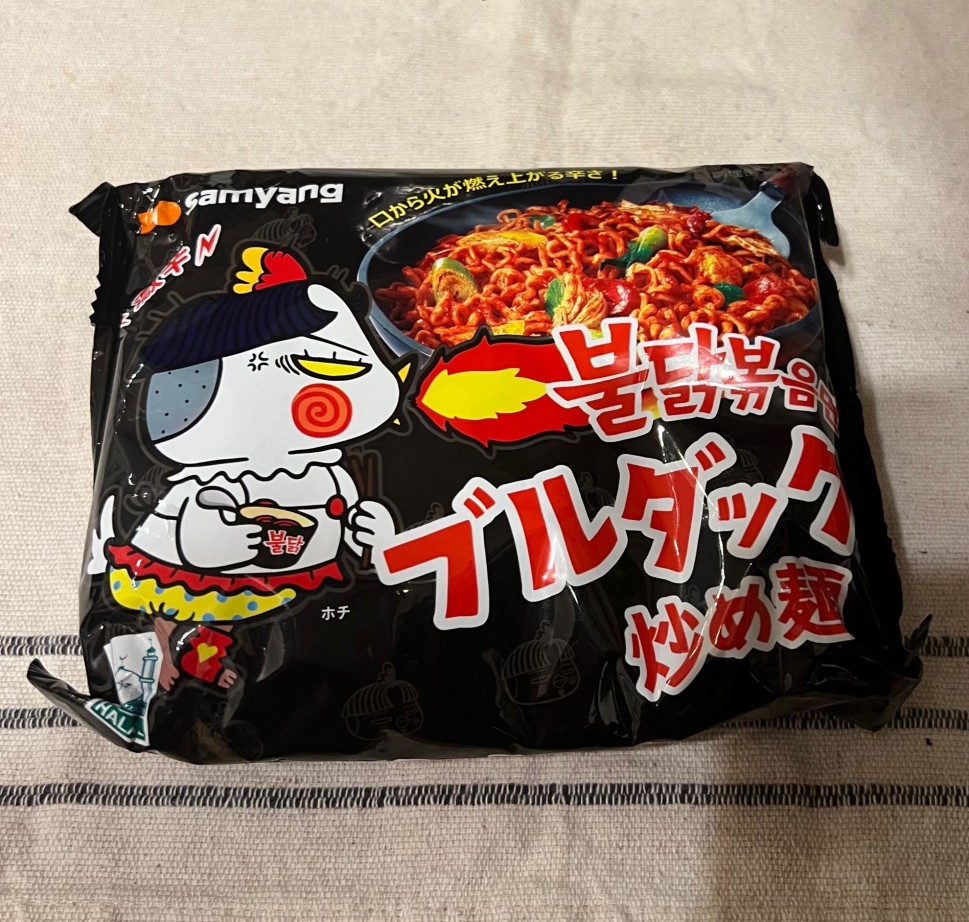 ノーマルを食べたことないかもと思って初実食。キムチも入れて、しっかりソース全投入&しっかり煮詰める。初手はこれは辛いかも、と思い食べ始めたら案外そこまででなく、もっと辛くても良いかも、とか思いながら美味しく完食。持続性がある辛さというより、パンチあって唇痛くなる系統でした。やっぱりブルダックは美味しい!