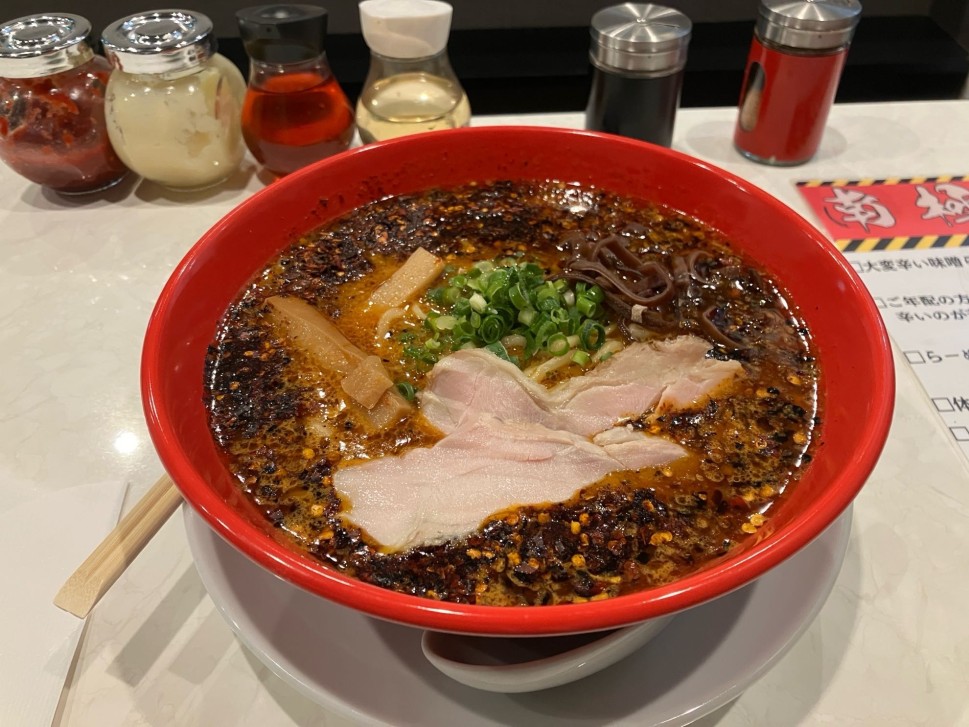 美味しく食べられるギリギリでした。時間が無かったのでお店の人とあまり会話出来ませんでしたが、完飲して次のレベルの「絶頂」の挑戦パス貰いました。麺は少なく、スープは多いので完飲はキツイ。キャロライナリーパー使用なので、軽い胃痛案件でした。