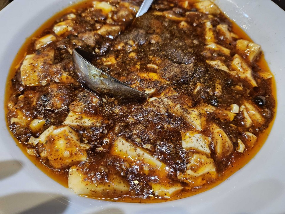 本日も五葷抜き。お店やさん、対応いただきいつも感謝感謝。またまた、とにかく味が美味しすぎる。花椒が香ります。バクバク食べている間に痺れと辛さがジャブのようにだんだん効いてきます。別で頼んだ海老のチャーハンとあわせたら最高でした。
