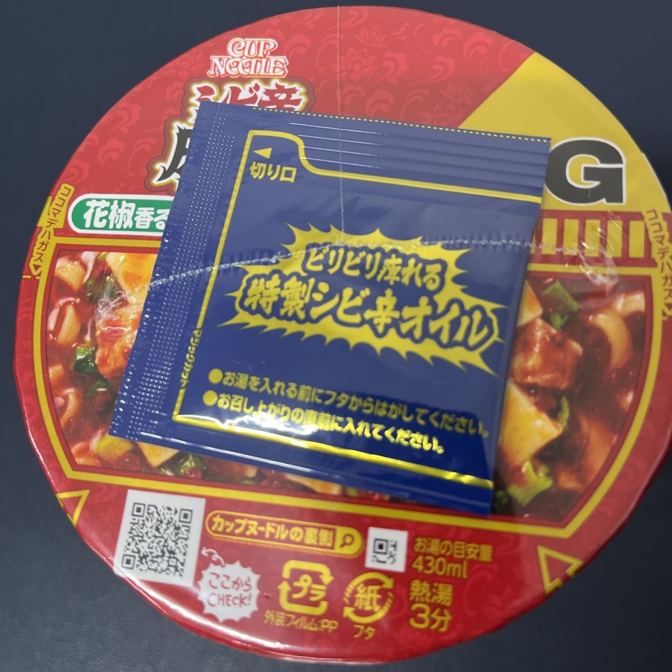 辛いというより、ガツンと痺れました。喉の奥がビリビリします。シビ辛は得意じゃないけどカップヌードルだしと、ちょっと舐めてました。