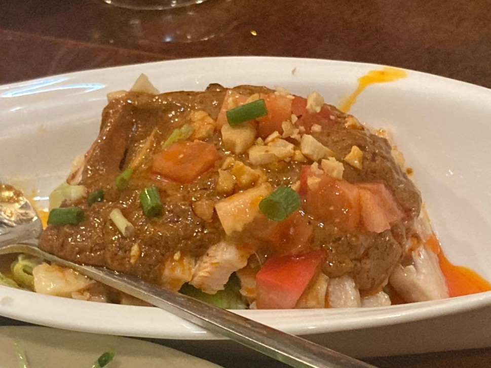柔らかくてジューシーな鶏肉に、ゴマ風味のタレがかかっていて、シンプルながらも何層も旨味を感じる味わい深さでとても美味しかったです!