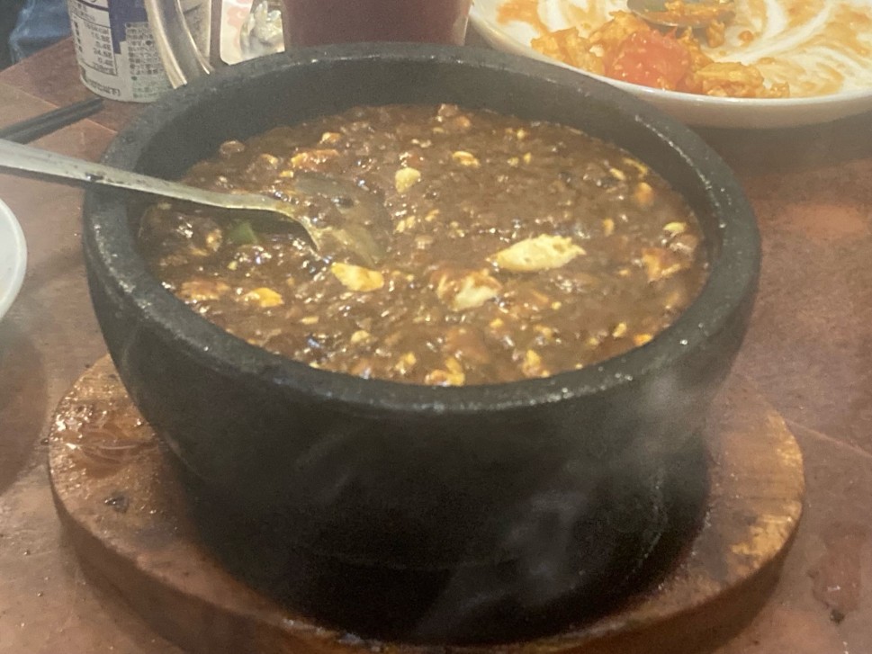 余談ですが山椒が強いのか匂いの刺激が強く、お店にいた人(店員さんや他のお客さんも含む)の全員が咳き込み、半数以上が店の外に出ていました笑