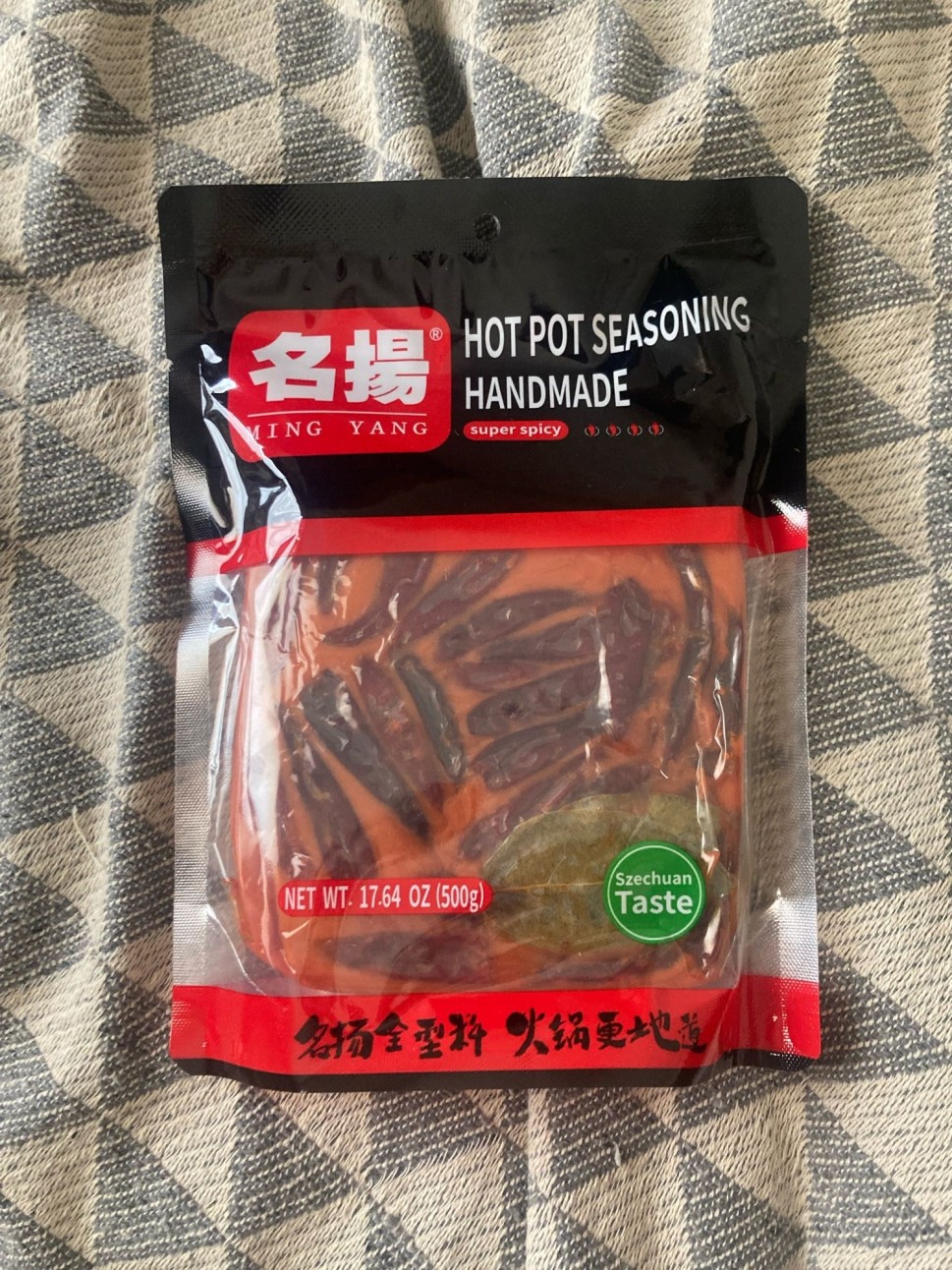 Amazonで買える大好きな火鍋の素。花山椒の塊を香ばしく炙ってから水を投入してできる火鍋スープは絶品!一緒に試した辛さ耐性があまりない友達は1杯食べ終わるか終わらないかのうちにトイレ駆け込んでました。辛さは感じますが、美味しく食べられるレベル。