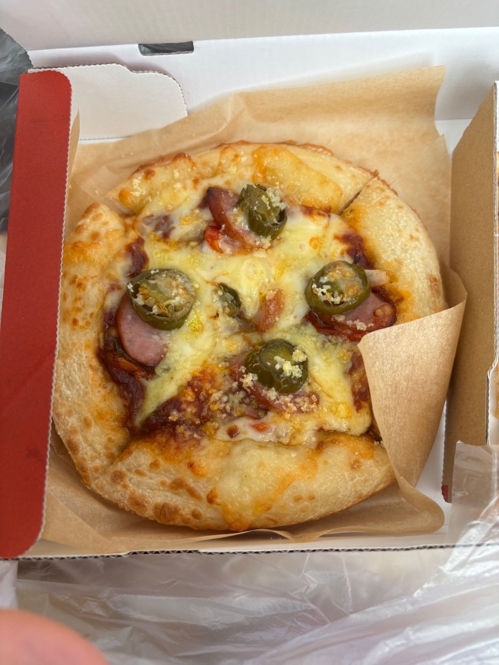 写真は1人用のMY BOXサイズ。辛さの素はハラペーニョとグリーンチリソース。ハラペーニョ少ないなと思ったけど、食べてみると意外にちゃんと辛くて美味しかったです。追加購入したグリーンチリソースをかけて完食しました。