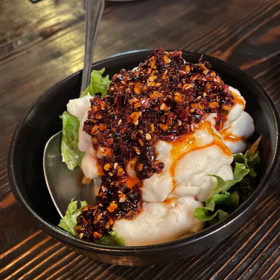 ポテサラに辣油を掛ける奇跡。バーでこれを出してくれるところが堪りません!おそらく食べる辣油の部類で、油っぽくもなくツマミonツマミで贅沢にいただきました🤤ここに来たらまずこれを頼むのが儀礼になりそうです😊💓