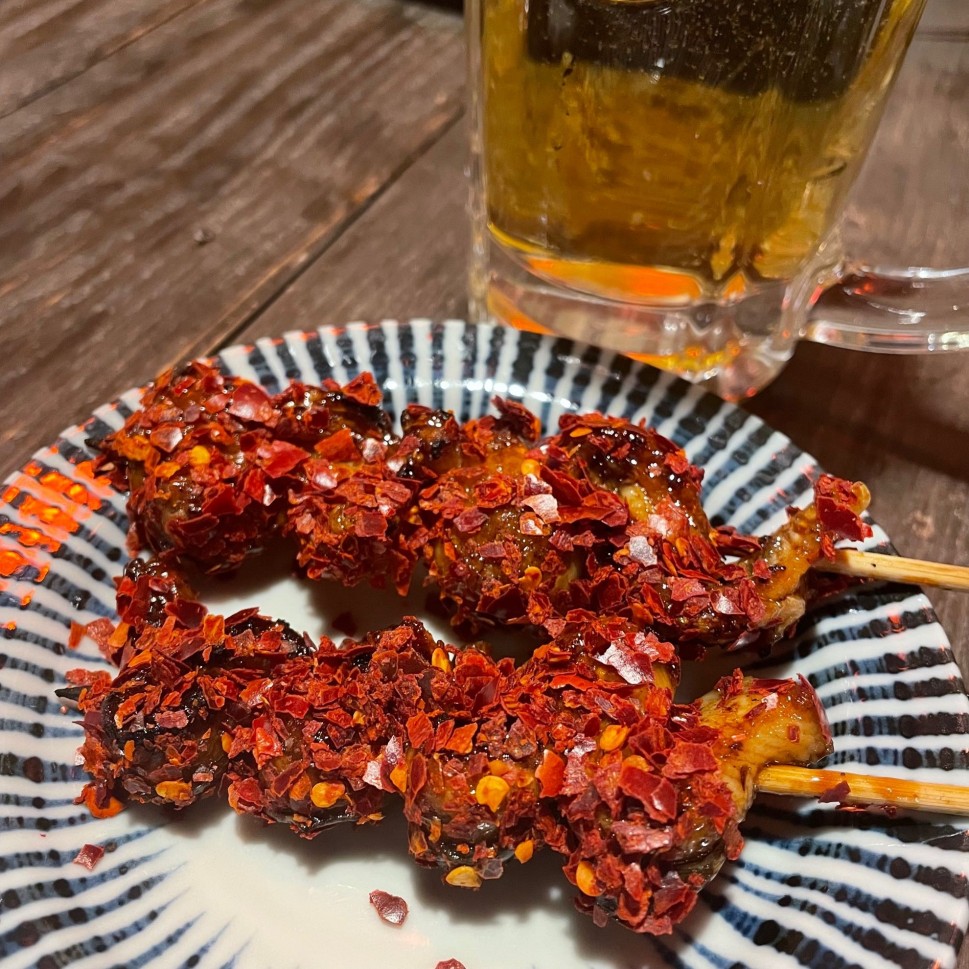 人生初くりから!うなぎの背中らへんらしいです。見た目すごく期待感ありますが、全然辛くなかった!笑少し苦味と、言われたらほんと微量に後味口あったかいな?というくらい。これ、唐辛子フレーク…ですよね?サイゼリアとかに振りかけるように置いてあるやつ…ですよね、かかってるの。