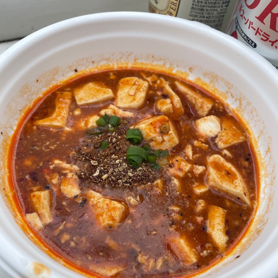 まず上に固まってかかっている山椒?花椒?がストレートに痺れドーンって感じで挨拶してきます。かき混ぜても二口半くらいでじわじわっと辛さがくるのでビールを挟みます。でも甘いと感じる瞬間もあって、口の中が忙しく美味しくいただけました!🍺✨