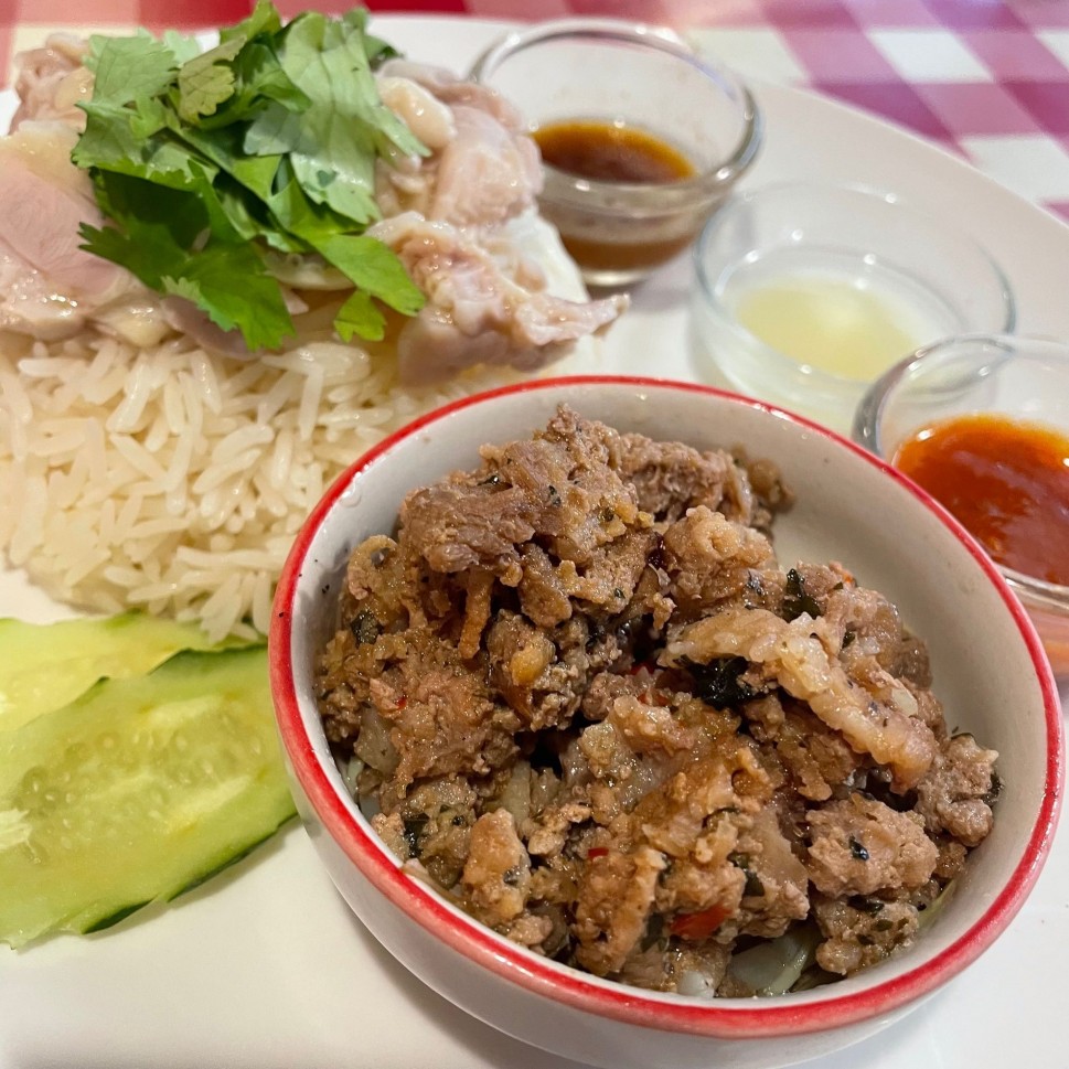 カオマンガイとガパオの贅沢プレート‼︎✨ガパオは甘めですが、お肉がすごい美味しいんです。噛むとじゅわっと旨味と味付けが口の中に広がって一生ビールが手放せません。カオマンガイは今日初めて食べました!3種類のソースが全部美味しく、これまたライスとビールを回して大慌てです笑