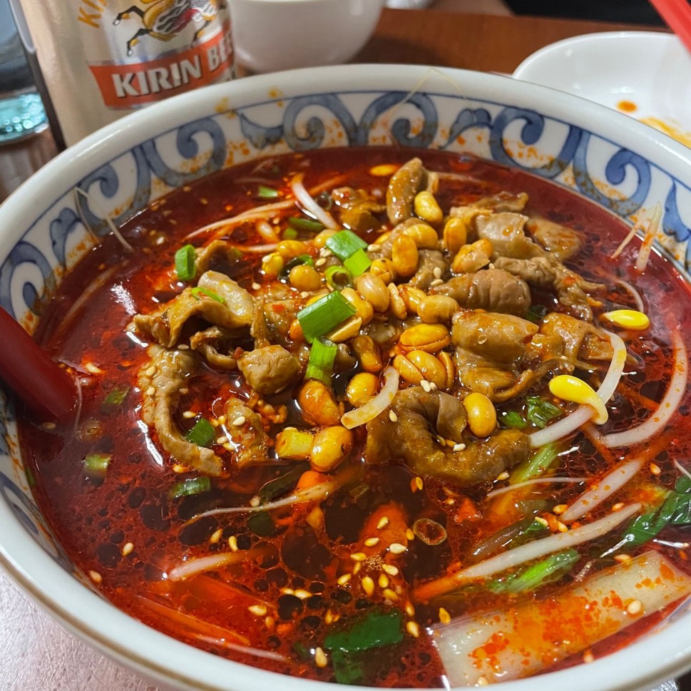 四川フェス参加店の香辣妹子さんで麻婆豆腐以外も頼んでみました!こちらは、このお店で一番頼まれることが多い有名メニューだそうです。辛め(激辛?)で注文しました。モツがぷりぷりでたくさん入っていて、味は濃いようなでも軽さがある独特な美味しさで、ちょっと形容し難いのですが美味しかったです☺️麺(春雨?)もとぅるとぅるでスープがよく絡みます。麻辣湯とは違うのかな?