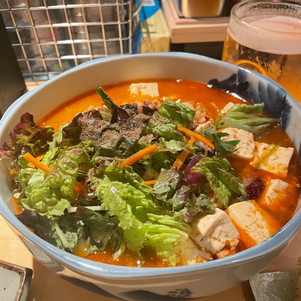 今宵の賄いメニュー、今回は暖かいそうめんでした☺️私が毎度激辛仕様でお願いするため、激辛そうめんを作っていただきました✨暖かいそうめんを食べるのも初めてでしたが、豆腐や野菜が乗っていたり、辛さは韓国産の激辛ソースで出していたり…など、店主が作ってくれるものはいつでも規格外で美味しい!!