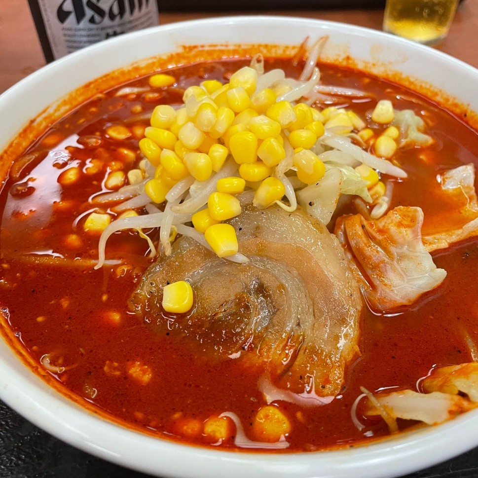 満を持して、丁寧でわかりやすいレビューで定評のあしさんとやって来ました😳スープひと口目で「あ、やばいか?」と思いましたが、麺や野菜はうまいうまいで進みました!でも、辛い!!耳はピリピリ、歯茎は噛むたびに痛みました。ラストの方は一口ごとに水を含みながらやっと完食。あしさん余裕で早々に完食されてたので圧巻、流石です。笑