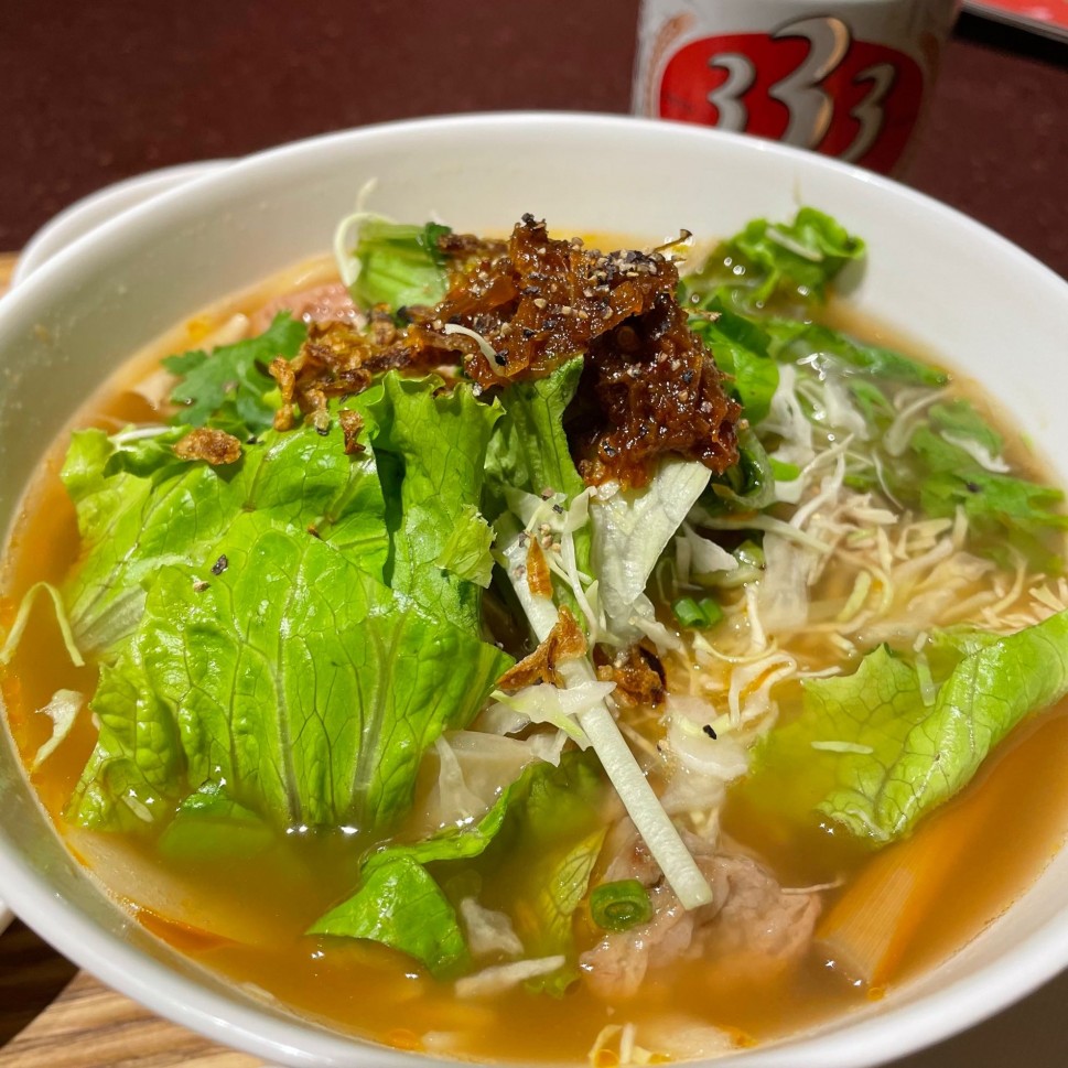 本日のサ食。こちらにセットでいただける薬味と生唐辛子を混ぜてジャッジをしております。流石エスニック。初手で「辛!!」という訳ではなく、食べ始めてだんだん唇が腫れてじんわり辛さを堪能できます。また、セットの薬味関係以外にサテーやチリソース、ヌォック・マム(魚醤)を追加調味料でいただけるので、たくさん味変が楽しめて美味しかったです☺️