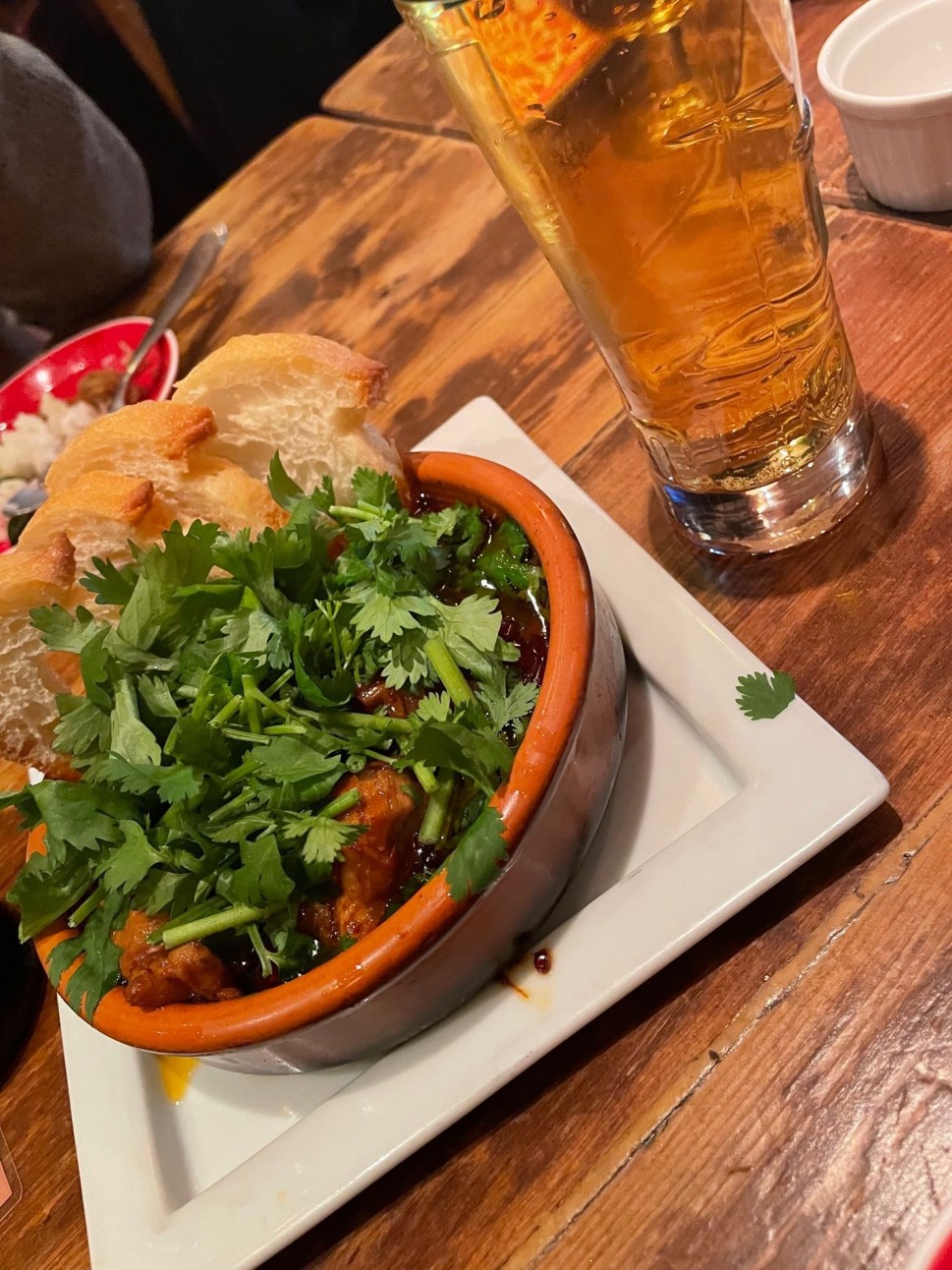 辛いしパクチー盛りだくさんだし美味しかったです😊🍺「チリージョ」効いたことなかったのですが、アヒージョをタイの甘辛味噌を使ってアレンジしたものらしいです。このメニューが1番辛いと記載してあったので頼みましたが、他にも「ジャンボマッシュルームとベーコン」「イイダコと韓国のり」のチリージョもありました!