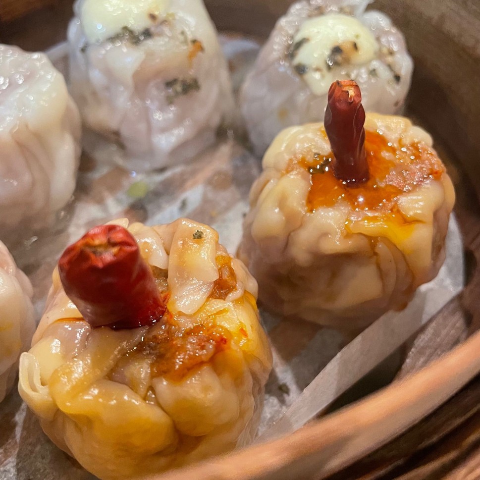 インパクトある見た目から食べ方に迷いますが、唐辛子は飾りなので引っこ抜き後で食べます。お肉がぎっしりと詰まっていて、焼売の割にかなり重いです。