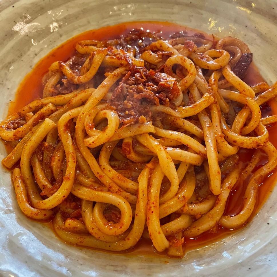 あんぷくさんのメニューの中で辛さNo.1の表記がされています。ペペロンチーノというよりも、見た目通りアラビアータに近いような味でした!辛さは通常、-1、-2で選べます。辛さを引けるなら増せるのかなと思いましたが、店員さんを戸惑わせてしまったため通常をいただきました☺️