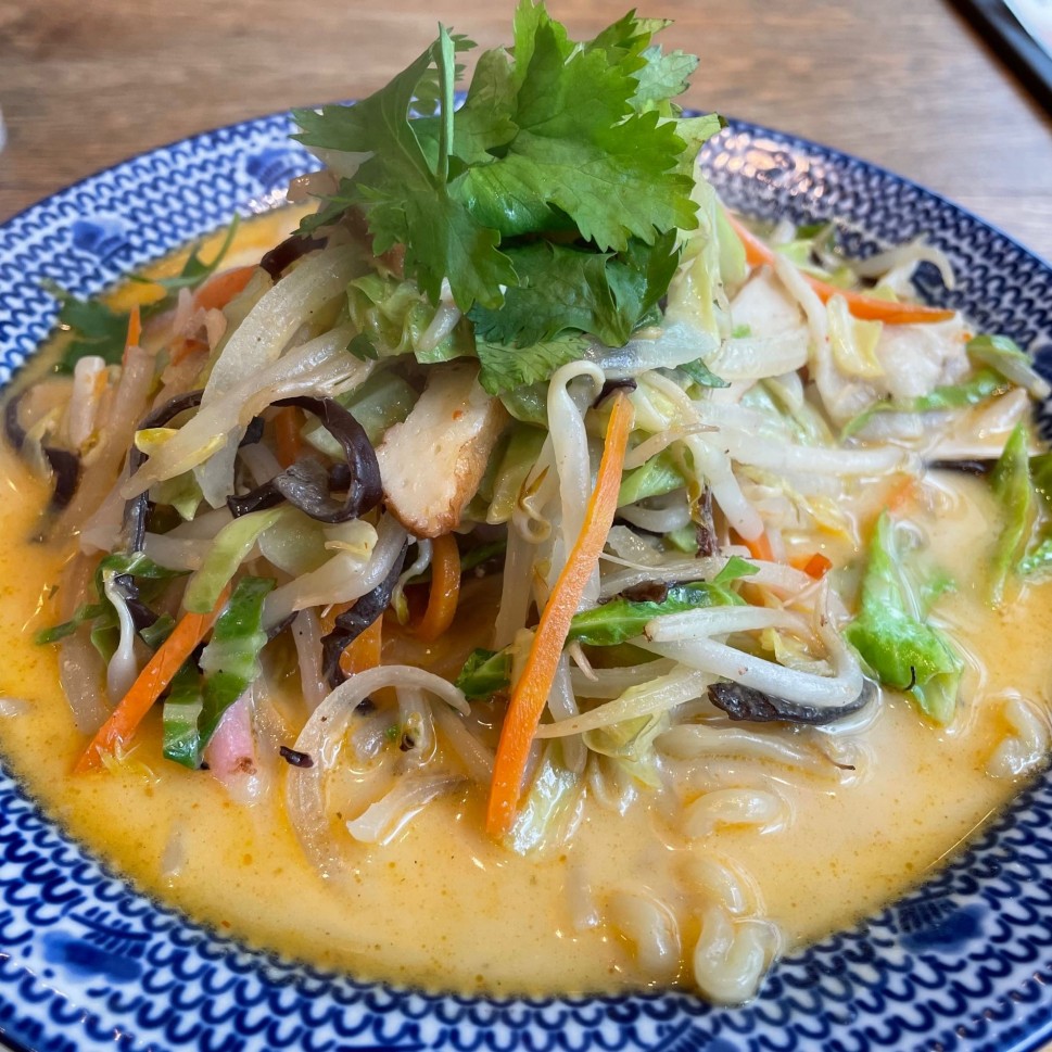期間限定です!メニューの辛さは3ランク中2でした!味は純白豚骨スープなのでまろやか。豚骨ベースはどうしても甘めになっちゃうのかな?でも、そのおかげでパクチーとスープに溶けたレモンや海老のエキスがきっちりと存在を表していました。ちゃんぽんとトムヤムクンとは考えたものですな。ビールがある時に食べればよかった。